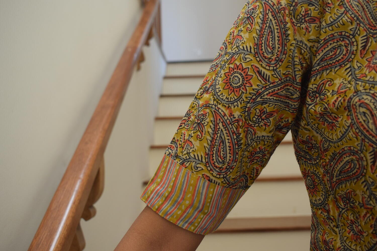 The rich colors and beautiful motifs of Kalamkari art lend an unmatched grace, making it perfect for any occasion.