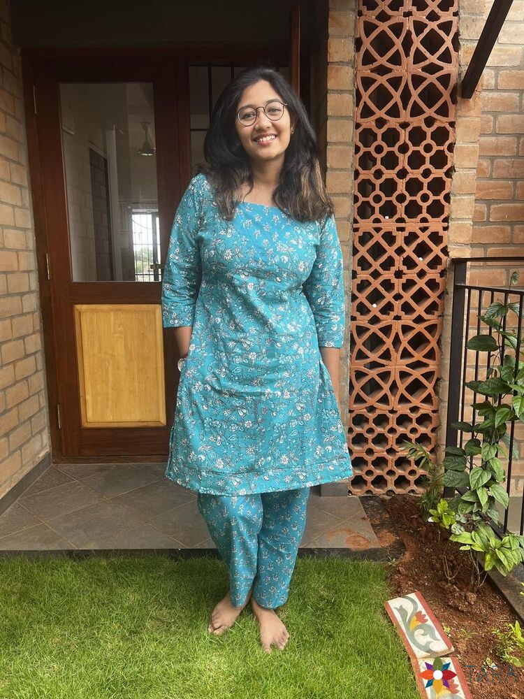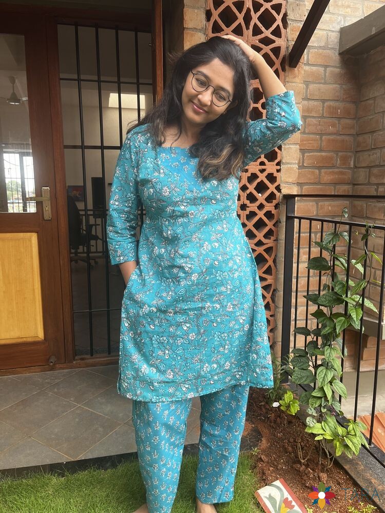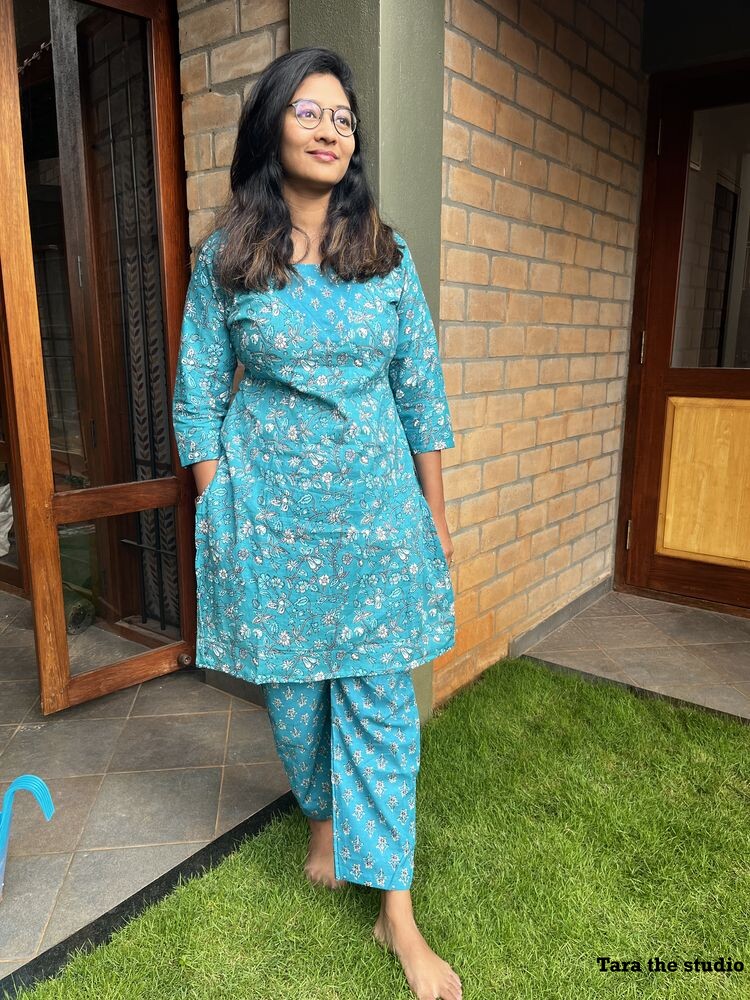Indulge in the blissful comfort of Tara's cotton kurti sets, designed with your ease in mind. Crafted from 100% cotton and adorned with convenient pockets, our sets offer effortless style and functionality for the modern woman on the go.
